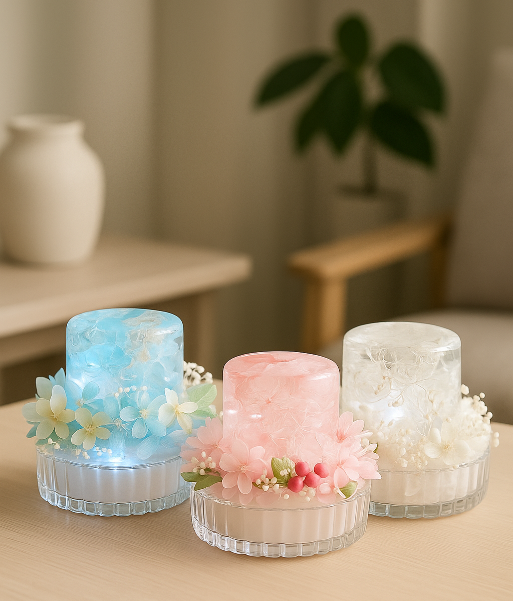 寝る前にほんのり灯すライトと、やさしい香りにすごく癒されています。ピンクのお花にローズガーデンリラックスの香りを合わせたら、自分の空間が一気に“好き”で満たされました。手軽なのに本格的で、大満足です!